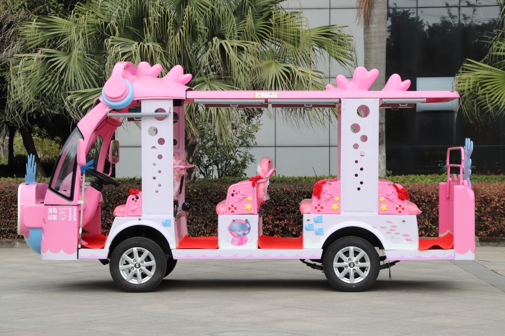 玛西尔珊瑚造型主题电动观光车根据一对一的专业设计制造服务,延伸出各种造型电动观光车,根据不同使用场景单独开发新车型,造型时尚漂亮,更好的适应客户需求。提供量⾝定制的景区观光车、园区观光车等定制方案,让观光车扮演多种角色,满⾜客⼾的不同需求,助力绿色低碳运营,提升客户服务品质与品牌形象