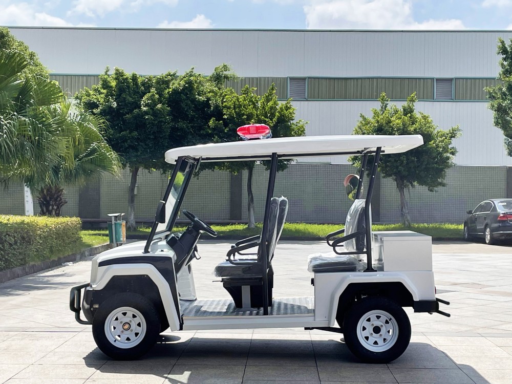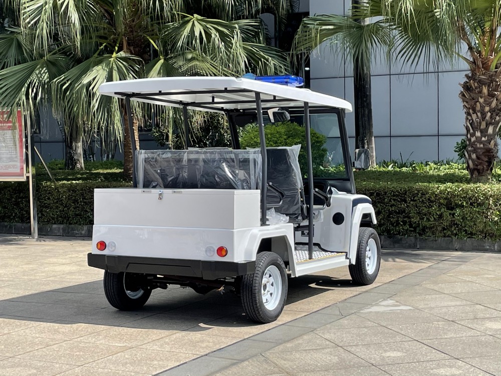 玛西尔五座电动巡逻车是机动巡查的首选车辆,集警灯、喊话器等专用系统及工具箱于一体,机动、灵巧提供便利。专为旅游景区、公园、大型社区、学校、医院、大型游乐场、花园式酒店、度假村、机场等场所开发的电动巡逻车。零排放、低噪音、节能环保,助力绿色低碳运营。支持主题配色、LOGO定制等。