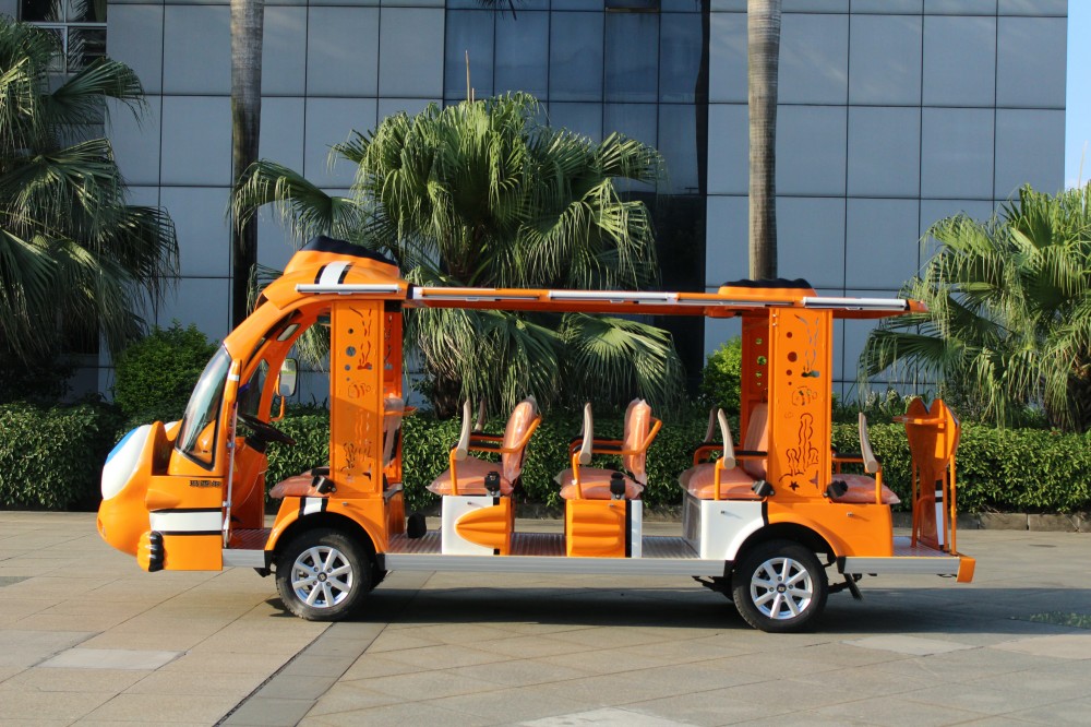 玛西尔小丑鱼造型主题电动观光车根据一对一的专业设计制造服务,延伸出各种造型电动观光车,根据不同使用场景单独开发新车型,造型时尚漂亮,更好的适应客户需求。提供量⾝定制的景区观光车、园区观光车等定制方案,让观光车扮演多种角色,满⾜客⼾的不同需求,助力绿色低碳运营,提升客户服务品质与品牌形象。