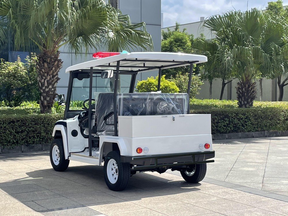 玛西尔五座电动巡逻车是机动巡查的首选车辆,集警灯、喊话器等专用系统及工具箱于一体,机动、灵巧提供便利。专为旅游景区、公园、大型社区、学校、医院、大型游乐场、花园式酒店、度假村、机场等场所开发的电动巡逻车。零排放、低噪音、节能环保,助力绿色低碳运营。支持主题配色、LOGO定制等。